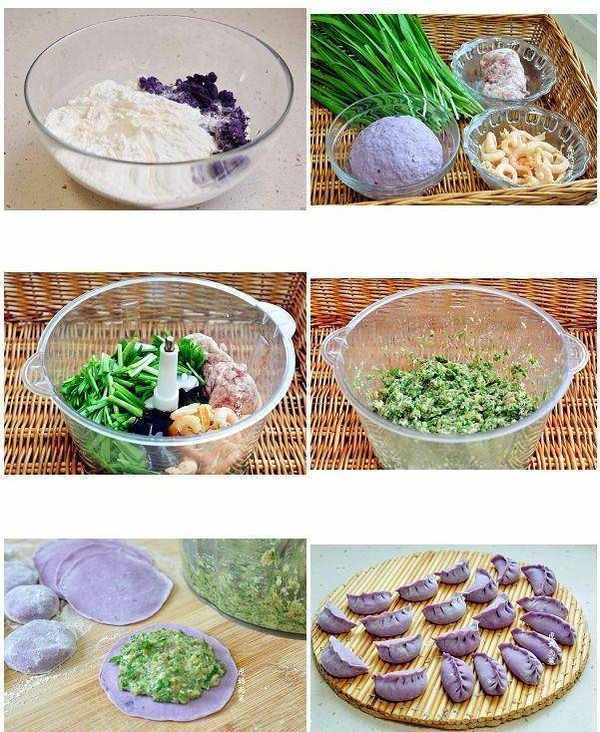 餡料:梅花肉餡150克,韭菜160克,蝦仁80克,橄欖油20克,蠔油35克,鹽3克。