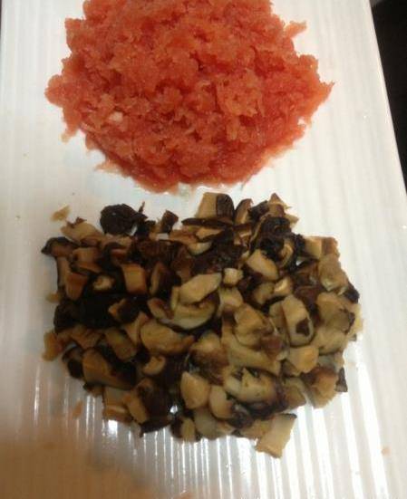 不過口感也還可以完全沒有胡蘿卜生味4朵發泡香菇切丁備用。