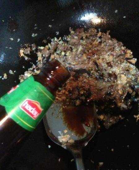 我油溫偏高瞭大傢炒肉末油溫別太高易粘成坨。