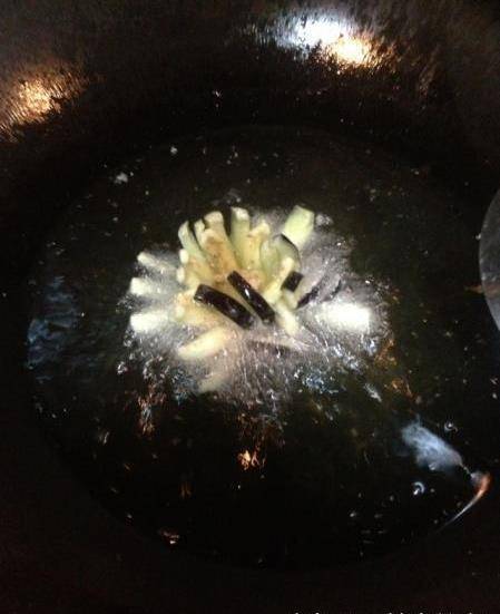 茄子花下進去稍微定型才能翻動喔可以用勺子將油淋在茄子身上使起均勻受熱