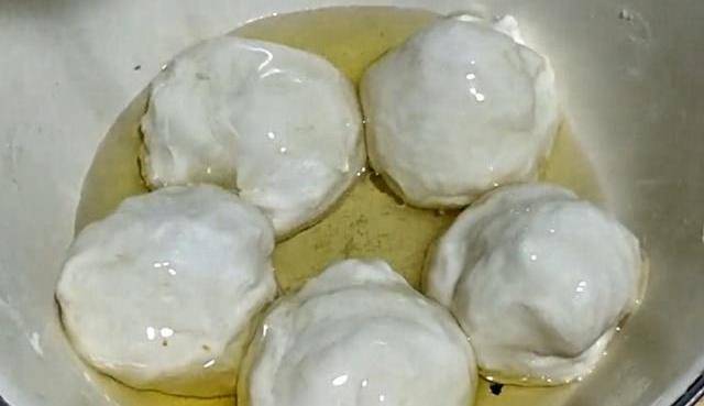 1:首先準備面粉300克、食鹽3克、溫水180毫升倒進面盆裡,攪拌成面絮,倒上食用油20毫升揉成面團,把面團分成一樣大的劑子,將每個劑子搓成圓球,放在碗中,倒上食用油浸泡一下。