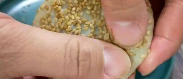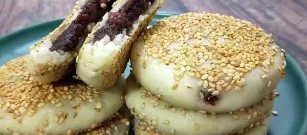 分成大小相等的6份,再準備適量的豆沙餡兒搓成長條狀,也分成6等分。再用手騰成豆沙球備用。取一個面積,用手按扁在按壓成薄面皮,放上一個豆沙餡,用糊口輔助的方法收口,再把封口處捏緊時稍微暗點一些就可以瞭。做好的小餅兩面都均勻的裹上一層白芝麻,這樣口感會更香。電餅稱要提前預熱,摔成薄油,放入山藥豆沙餅。面烙紙微黃,再給小餅翻個面兒。反復來回的翻面兒,防止小餅烙糊,一直烙到兩面微黃就可以出鍋瞭。
