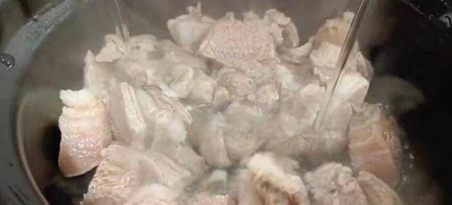 3、鍋裡加水,羊肉冷水下鍋,加適量白酒去腥。冷水下鍋才能把血水逼出來,熱水下鍋,羊肉預熱就會收緊,那樣燉出來腥膻味特別大。開鍋以後撇掉浮沫,焯水兩分鐘左右撈出水不要倒,用漏勺打撈幹凈。白蘿卜下鍋也焯一下水。很多朋友燉羊肉湯都喜歡放白蘿卜,但是最後做出來味道怪怪的,就是因為沒有焯水。