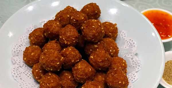 焦炸丸子是河南洛陽的一道家常菜,丸子是選用猪肉剁成餡,通過擠壓成小球放入油鍋中炸至成型的,這道菜在當地是非常受歡迎的,過節過年,招待客人,用炸好的丸子做道菜,非常的合適,可以煮湯,可以椒鹽,可以拌面等等吃法,只要提前備好一些丸子,丸子的大小就跟大拇指大小差不多,一口一個非常爽口。