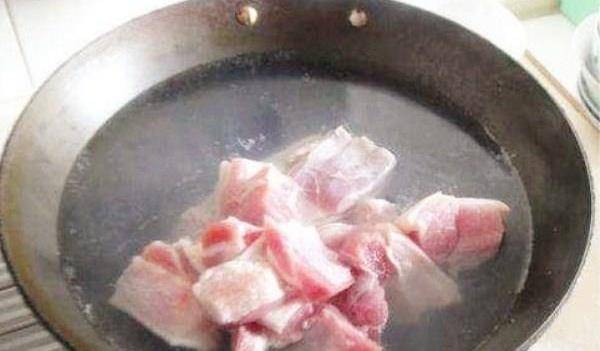 首先我們要把肉清洗幹凈,一般燉肉的時候我們選擇的都是豬肉,清理幹凈後切成塊狀,這時候我們還不能直接的燉肉,還要多加一步,那就是要把肉焯下水,這樣會去除肉裡面的雜質和血水,要用冷水下鍋,焯兩分鐘左右就可以撈出瞭。