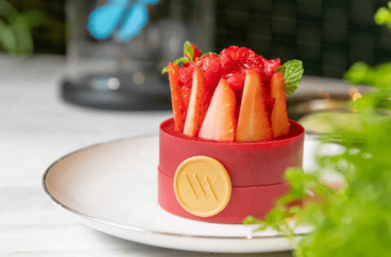 對於李文武來說,甜品是一門藝術。華爾道夫的紅絲絨蛋糕聞名於世,而李文武則在保留經典配方的同時進行改造創新。紅絲絨的顏色制作采用紅菜頭、紅曲米,以手工熬制出天然色素。而在造型與口味上,李文武則采用瞭廈門當地的新鮮水果與清新薄荷葉在蛋糕上層做裝飾。蛋糕的外層使用層層疊疊的巧克力薄片,使蛋糕能夠猶如禮盒般層層拆開。最經典的絲絨海綿蛋糕部分,李文武則加入瞭酸甜的果醬流心增加層次感。這一切看似微小的創新,成就瞭現在廈門華爾道夫獨有的紅絲絨莓果夏洛蒂。