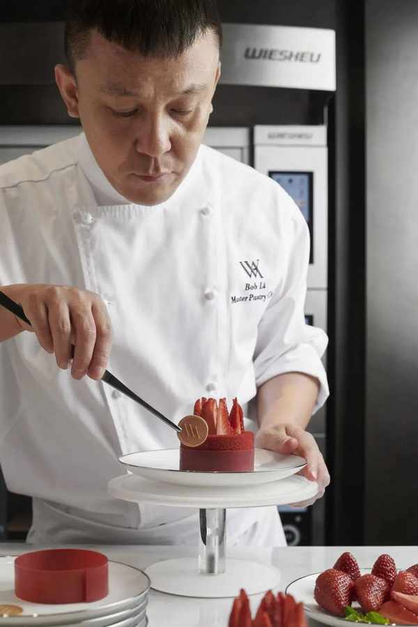 廈門華爾道夫酒店餅房廚師長李文武,潛心鉆研甜品近20年。他的作品藝術氣息濃鬱,將個人情感也融入其中,賦予甜品獨特的靈魂,備受客人好評。李文武熱衷於推陳出新,每過一段時間,他都會研究出新的甜品,並替換掉不夠受歡迎的作品。與此同時,他還會考慮到季節變化與地域特色,結合當地的季節性水果制作系列新品。