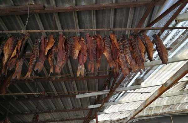 臘魚,據說這裡全是用活魚制作的,魚肉緊密細致,煙香風味十足。死魚做出的臘魚,肉質松散,甚至粉粉的口感差。