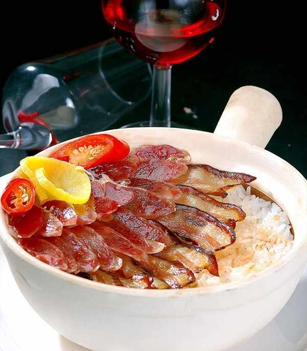 幾人對酌,隻吃一盤臘肉不免單調,而把幾種熏臘制品合並蒸透,上桌佐酒,一盤菜吃到幾種肉自然大受老饕歡迎,這就是臘味合蒸的由來。