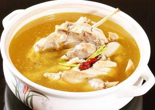 老母雞湯就是用老母雞煮的湯,老母雞宰殺後除去內臟等外部雜物洗凈,與蔥、薑、料酒、精鹽同時放入開水鍋內,用慢火燜煮(水不沸騰為宜,使雞肉中蛋白質、脂肪等營養物質溢出)。約煮3小時,直至雞肉脫骨,即可食用。