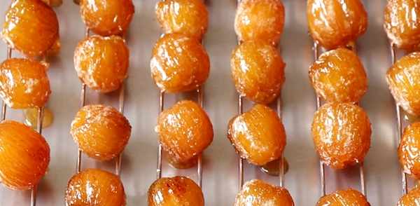 5.準備一個烤架,把煮好的冬棗一顆一顆擺放上去,因為現在天氣轉凉,都是陰天,所以選擇用烤箱把蜜棗烤幹。如果喜歡吃軟糯香甜些的,就不要烤那麼幹,喜歡吃幹一些,脆一些的,可以多烤一會,這個可以根據自己的愛好來選擇。我們的蜜棗做好了,個個透亮,看著就特別的惹人喜歡。掰開一個看看,非常的柔軟,因為給孩子吃,所以沒有烤那麼幹,這樣的蜜棗吃起來特別的軟糯香甜,大人小孩都特別愛吃哦。
