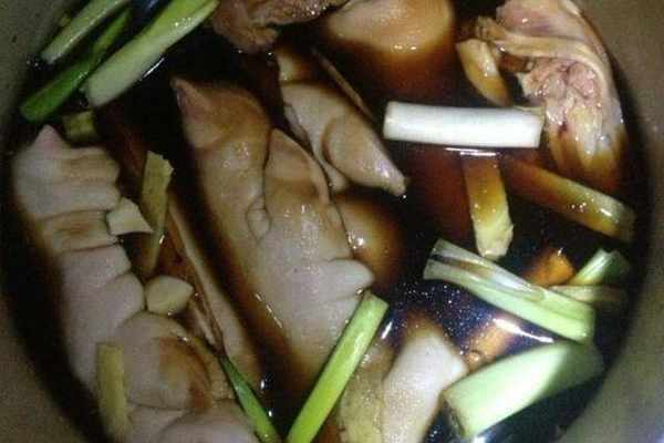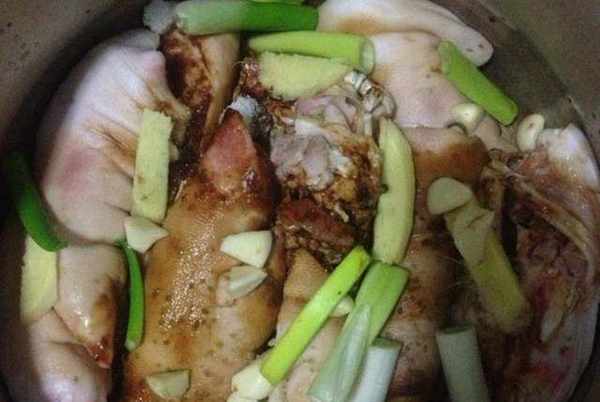 食材:豬蹄3個、蔥半棵、蒜6瓣、薑1塊、生抽20g、老抽10g、白酒5g、花椒3g、八角1個、桂皮1塊、白糖適量、鹽適量。步驟如下: