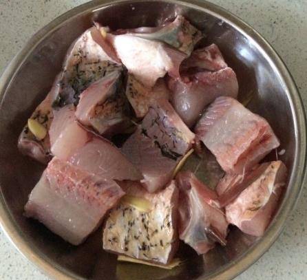 準備好之後,我們首先把魚清洗幹凈,記得一定要多清洗幾遍,因為魚裡有很多血水,而且在市場買回來的魚,肯定沒有掏的很幹凈,就需要我們自己再仔細清理一遍,也能更好的去除腥味;洗好之後,把魚剁成和麻將大小差不多的魚塊,再清洗一遍;把一部分薑切絲,然後把魚塊放進一個大碗裡,加入薑絲和適量生抽攪拌均勻,醃制15分鐘到20分鐘左右,醃制可以幫助減少魚的腥味,醃好之後把魚塊瀝幹水分備用。