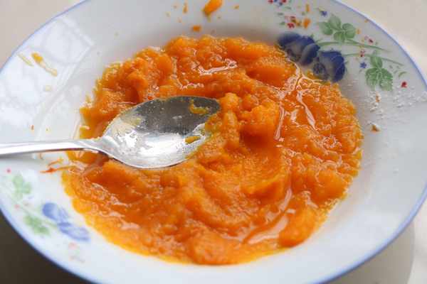 1、把南瓜隔水蒸熟,然後將南瓜壓碎成泥;