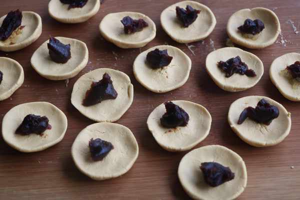 4、小面團稍微抻薄,包上適量的豆沙;