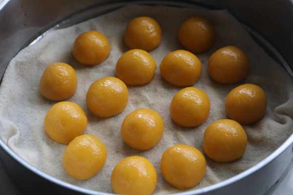 6、把圓球放在蒸籠上,開水上鍋蒸8分鐘;