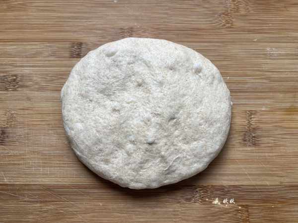 6,把發酵好的面團取出來按壓排氣,如果你水量沒有掌握好,這裡會粘手的話,在手上拍一層幹面粉就不會粘瞭。