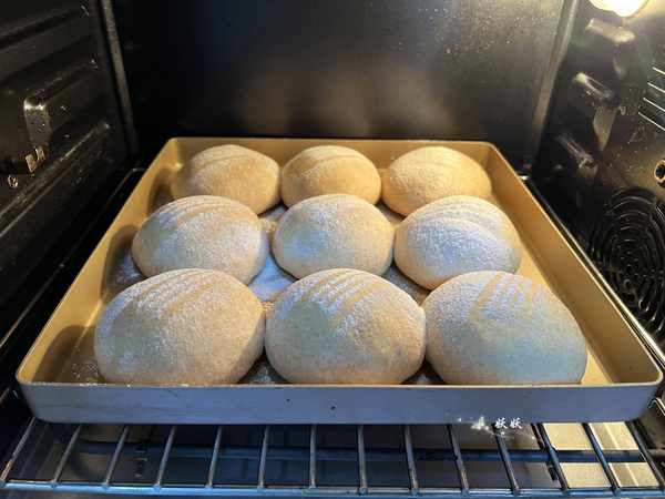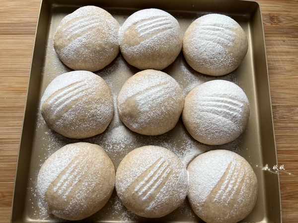 9,發酵好的面包胚表面可以撒一些低筋粉裝飾,也可以直接用。
