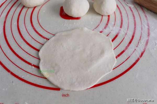 步驟4:這個時候面粉發酵好瞭,取出面團,再次揉搓、排氣。然後分成小團,大小可以根據自己做的包子而定。用搟面杖把面團搟薄,包子皮就做好瞭。