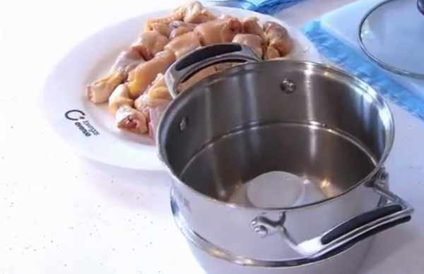 食材和工具準備好之後就可以開始制作瞭,在隔水燉的燉鍋裡面放入一個碗反扣,把新鮮的雞給斬成小塊,然後批在這個碗上面,蓋上鍋蓋,讓隔水燉雞燉足四個小時,在這四個小時的時間,一定要註意水別燒幹瞭就好。當四個小時的時間到瞭,我們可以看到鍋裡的燉雞跟我們平時燉雞湯是不一樣的,這樣的燉雞都燉瞭四個小時,裡面竟然看不到一點雞汁,更別說雞精瞭,這雞精到底在哪裡呢?