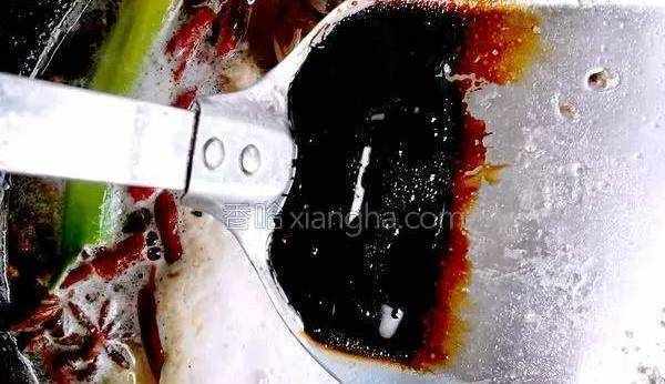 7.放入一勺老抽,一勺醋和糖,鹽適量