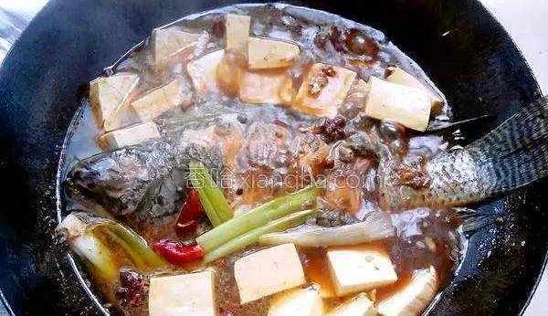 菜譜小貼士: 魚燉上以後,切豆腐,切完就可以下鍋一起燉,這樣豆腐到最後會特別入味,所謂的燉“呲窩”瞭,就是豆腐表面有小小的裂痕,豆腐已經沒那麼軟瞭才好吃!還有燉魚,尤其是鯉魚,放調料時,除瞭涼油上色外,醋和糖不能少,都是去腥必須品!