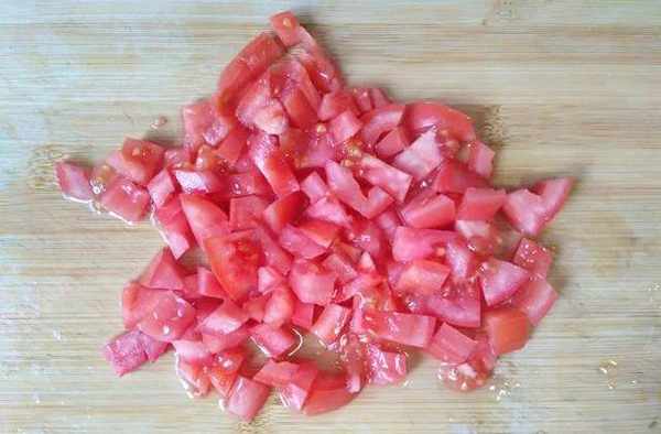做法:番茄用開水燙幾分鐘,去皮後切碎(番茄去皮切碎更容易煮爛)