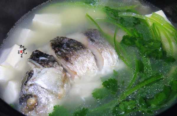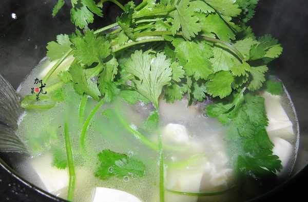 3、魚湯出鍋前,再放入香菜,魚湯味道會更加香濃。