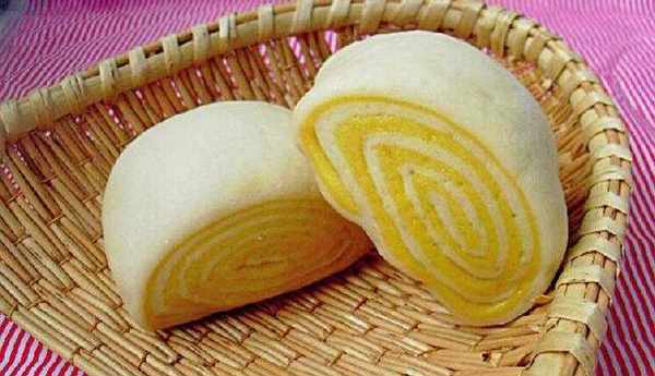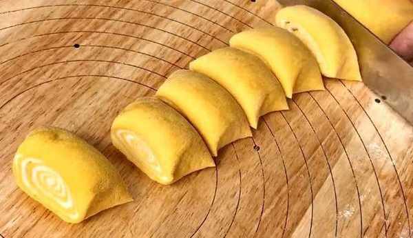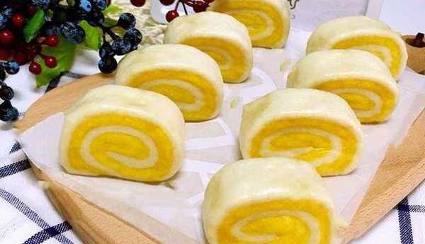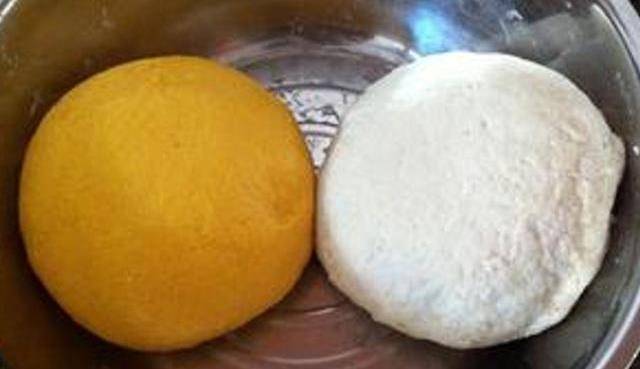 準備一塊南瓜削皮切成片,先裝在一個盤中,然後熱水上鍋蒸熟瞭。把蒸熟的南瓜取出來,用搟面杖或者是勺子搗成泥,加上3克食鹽、3克酵母攪拌一下,再加上適量的面粉,揉成光滑的面團,醒發至2倍大。再取出與南瓜面團等量的面粉,加上酵母、溫水和面,揉成面團,也是醒發至2倍大。