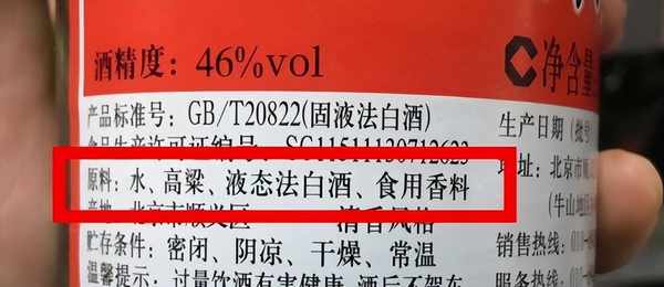其實配料十分的簡單易懂,大傢在看的時候隻要其中有哪些原料,如果都是一些我們生活中常見的糧食,那麼就是一款純糧酒,但如果除瞭常見的糧食之外,還出現瞭一些添加劑,比如“香精、增香劑,固液法白酒”等字樣,那麼千萬就得小心瞭!