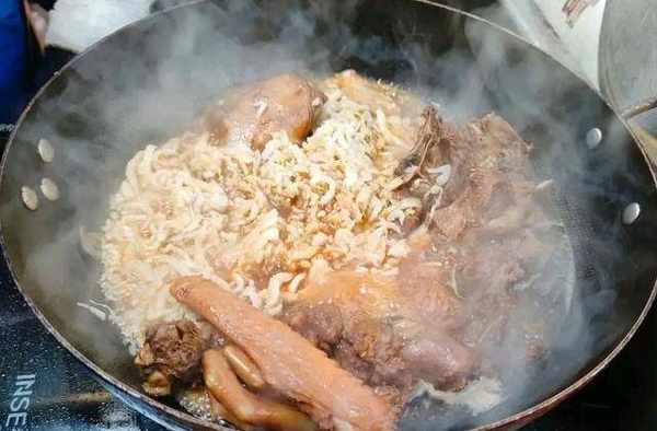 5.鍋中湯汁大火燒開後撇凈浮沫,然後轉小火慢燉,燉到鵝肉用筷子一插即透的時候,放入攥幹水分的酸菜絲,燉到酸菜軟爛時加入鹽調味即可出鍋。