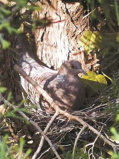 沿買賣街一路上行,可能有香山寺橫三佛、縱三佛的依山借勢,層層照拂,感受到一片安寧靜美的氣息。咫尺之間忽然發現松枝間的窩裡趴著一隻珠頸斑鳩,一動不動。你看它,它也瞪著溜圓的小眼睛看你,模樣質樸,神態平和。
