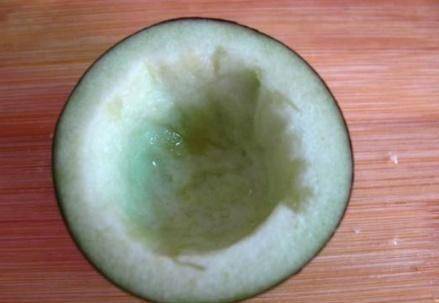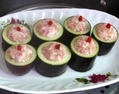 第一步:先把買回來的茄子洗幹凈,把茄子切成段,盡量切成一樣大小,切得厚一點,方便以後用。茄子切好後,在茄子中間挖一個小洞,方便後面放肉。挖茄子的時候一定不能把茄子挖空,這樣既不好看又影響口感。