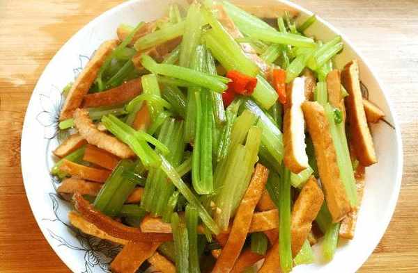 烤芹菜是一道傢常菜,味道很好。這是人們餐桌上常吃的一道菜。芹菜營養價值高,含有豐富的蛋白質和維生素,有降血壓作用;而幹豆腐口感好,營養價值高,這兩種食物可以一起吃。
