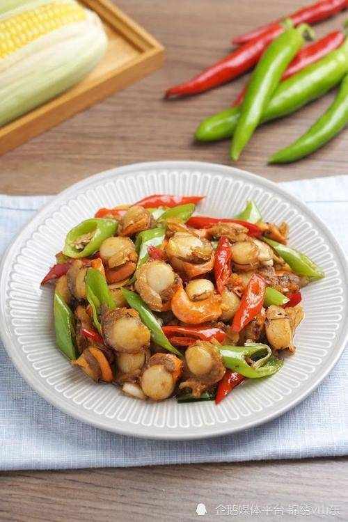 食材:扇貝,青椒,幹辣椒,薑絲,蔥花,洋蔥,豆瓣醬。