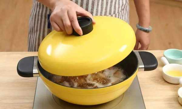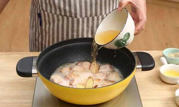 4. 放入生抽、老抽、冰糖大火燒開後轉小火燉十分鐘。