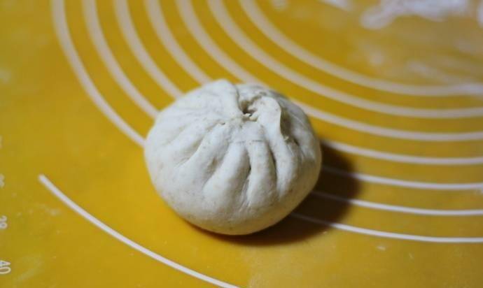 10、將餡料包在面團中央,捏成一個有褶皺的圓圈,做成包子狀;