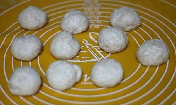 8、先將發酵好的面團排空,分成10個小面團,排氣完畢後搟成圓球;