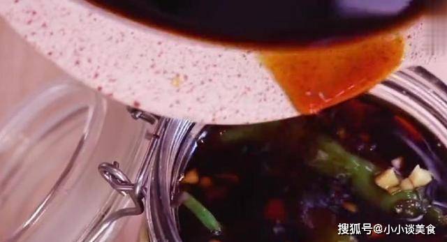 第三步:將辣椒放入盒子中,撒上相應的鹽,搖勻,然後將辣椒和大蒜切碎,放入辣椒盒中,再次搖勻,加入剛剛冷卻的湯。醬汁淋在辣椒上,加少許白酒,蓋上蓋子放入冰箱冷藏一周後即可食用!