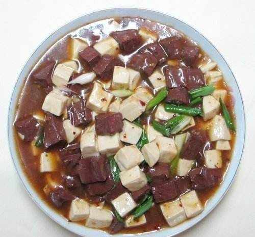 豆腐炒豬血是一道健康又有益健康的美食。豆腐的綿軟加上豬血的綿軟,讓口感更加獨特。有助於預防骨質疏松癥的癥狀。