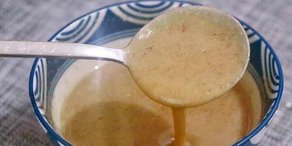 2、發面的同時準備一些油酥,小碗中加入40g面粉、5g鹽、5g五香粉、2g胡椒粉,攪拌均勻,再倒入70g剛燒開的熱油,攪拌成酸奶狀的油酥。