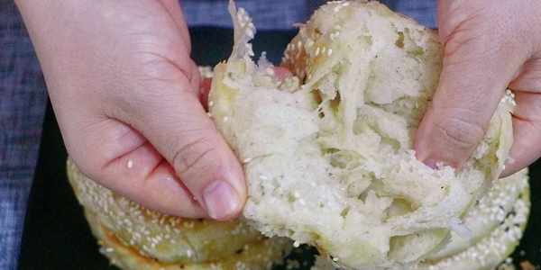 9、香噴噴的五香燒餅就做好瞭。捏一下直掉渣,咬一口滿嘴留香,撕開一看層次豐富,又酥又軟又香,一點都不比買的差。喜歡的可以先收藏起來,有空在傢做一下哦。