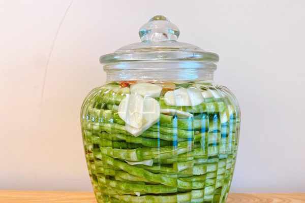 2、豆角最上面可以倒上一些高度白酒,能消菌殺毒,延長保質期;