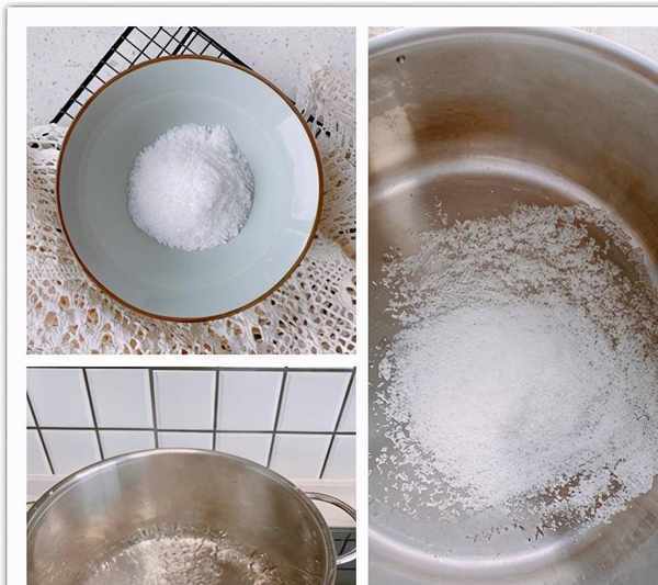2、在一個幹凈的無水無油的鍋中加入適量的清水,清水根據容器大小準備,加入食鹽和白糖,食鹽和白糖的用量和上面的是一樣的,大火把水煮開,煮開之後關火,放在一邊晾涼,用煮熟的鹽水能減少生水中的細菌,用燒開的水浸泡,豆角不容易變質;