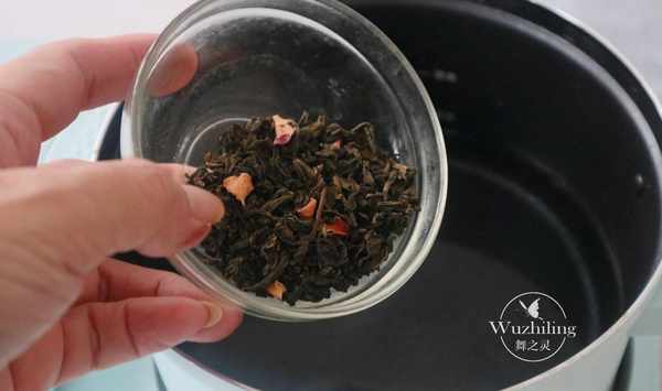 第一步:首先將5克的白桃烏龍茶放入奶鍋裡面,然後加入500ML的水,水開後繼續煮片刻。