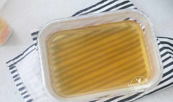 第四步:將攪拌好的茶水倒入保鮮盒,然後蓋上蓋子,放入冰箱冷藏到凝固。