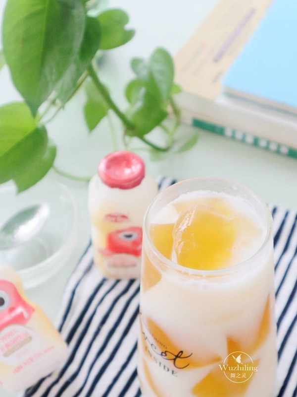 最後就是成品組合瞭,這裡面我們要提前準備適量的冰塊(要提前冷凍好),乳酸菌飲料,白桃烏龍茶凍。