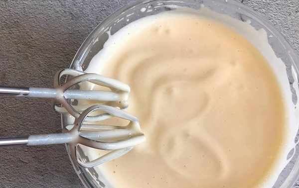 用電動打蛋器低速打發,如果有時間,用手動打蛋器也可以,但是時間要得久一點。打至蛋黃顏色變白,體積明顯變大膨脹瞭就可以瞭。這個和做蛋糕打發是一樣的。