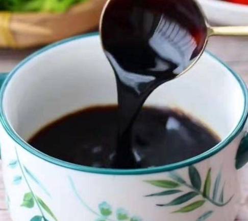 4、把鍋中調好的料汁倒入碗內,把大料取出,剩下蔥焦葉和料汁備用。