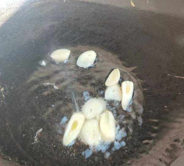 第8步、鍋內放油,放入蒜片爆香。